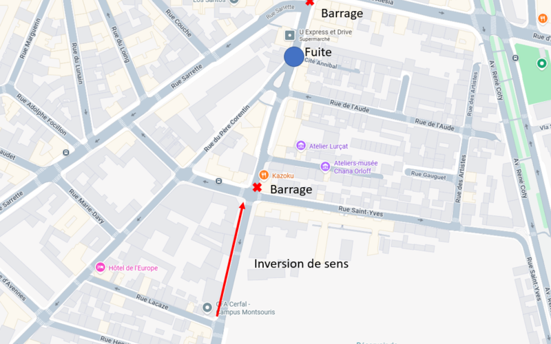 En raison d'une fuite de canalisation au N°85 Rue de la Tombe Issoire depuis mardi soir, la rue de la Tombe-Issoire est fermée. Pour maintenir la circulation dans le quartier (notamment pour les riverains de la Rue Saint-Yves), le sens de la Rue de la Tombe Issoire sera inversé, entre la Rue Lacaze et la Rue Saint-Yves.