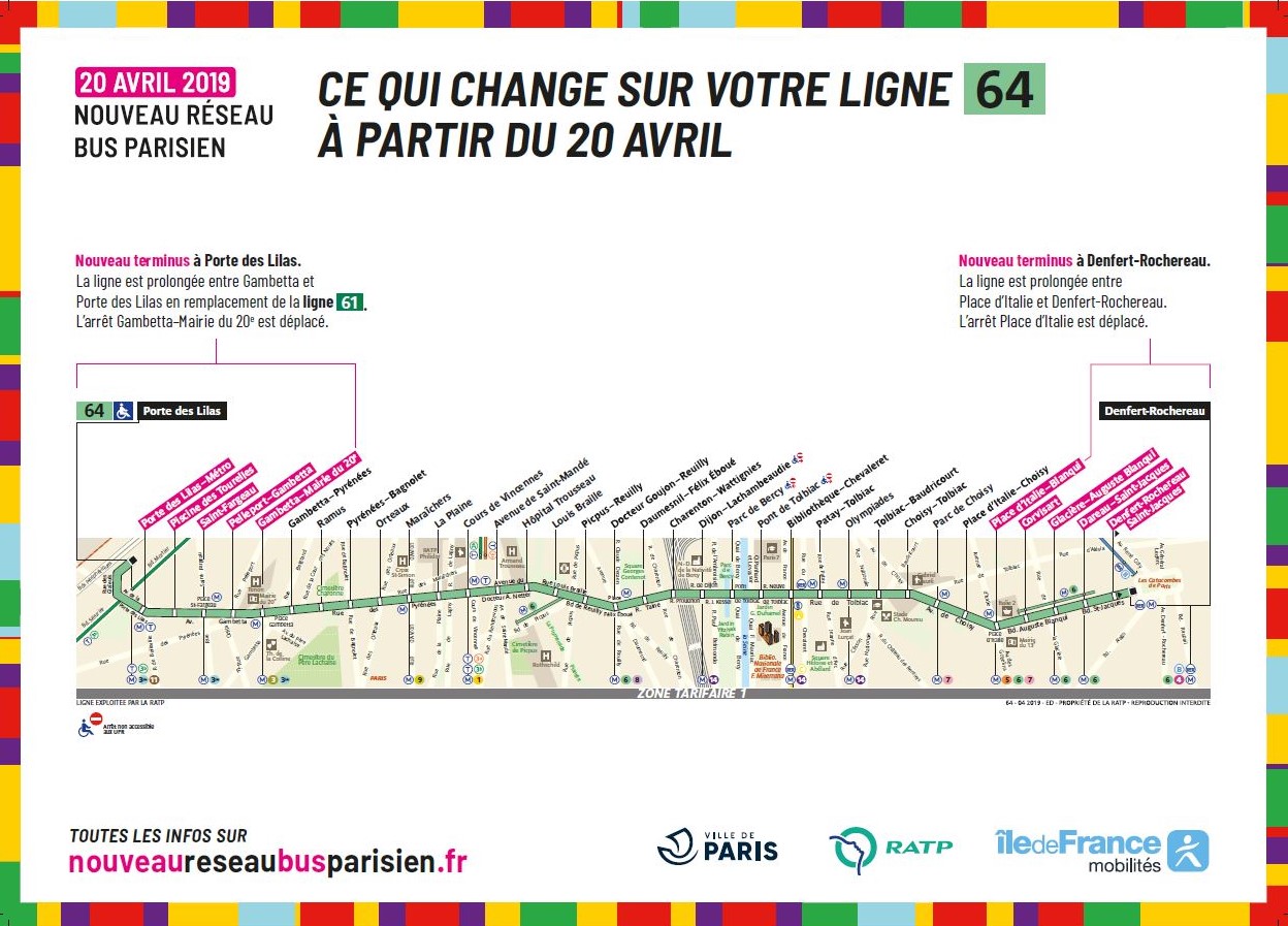 La ligne 64 est prolongée jusqu'à Denfert-Rochereau.