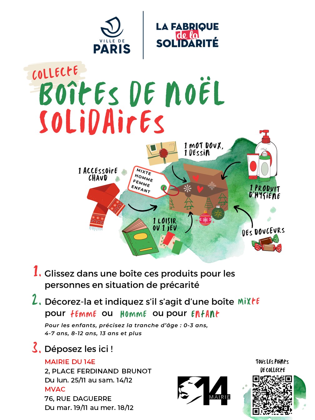 Collecte des Boîtes de Noël solidaires par la Fabrique de la solidarité