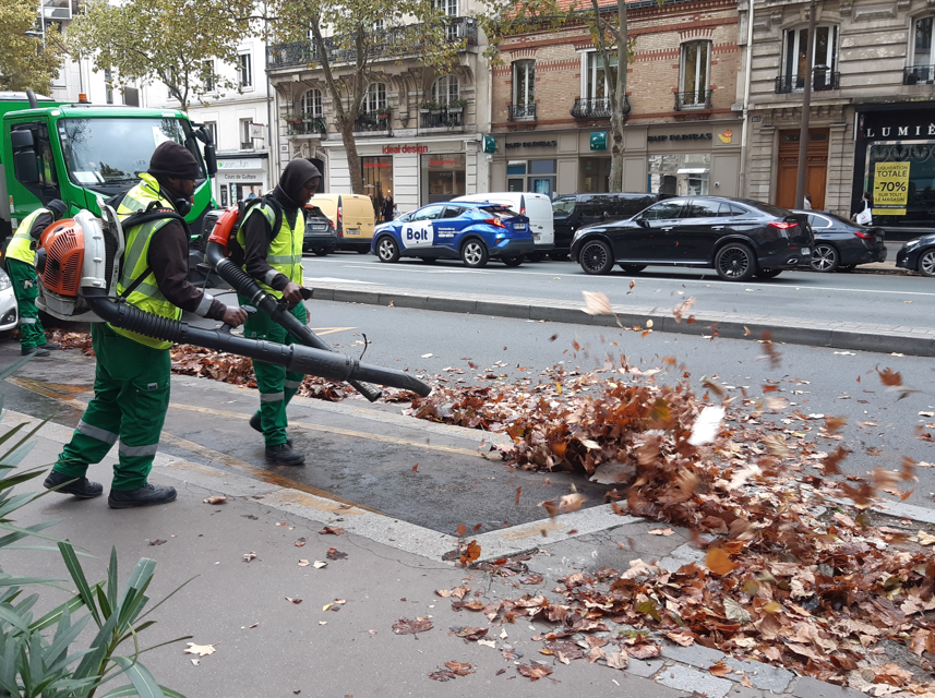 Pour ce travail, les agents sont équipés de souffleuses, aspire-feuilles,