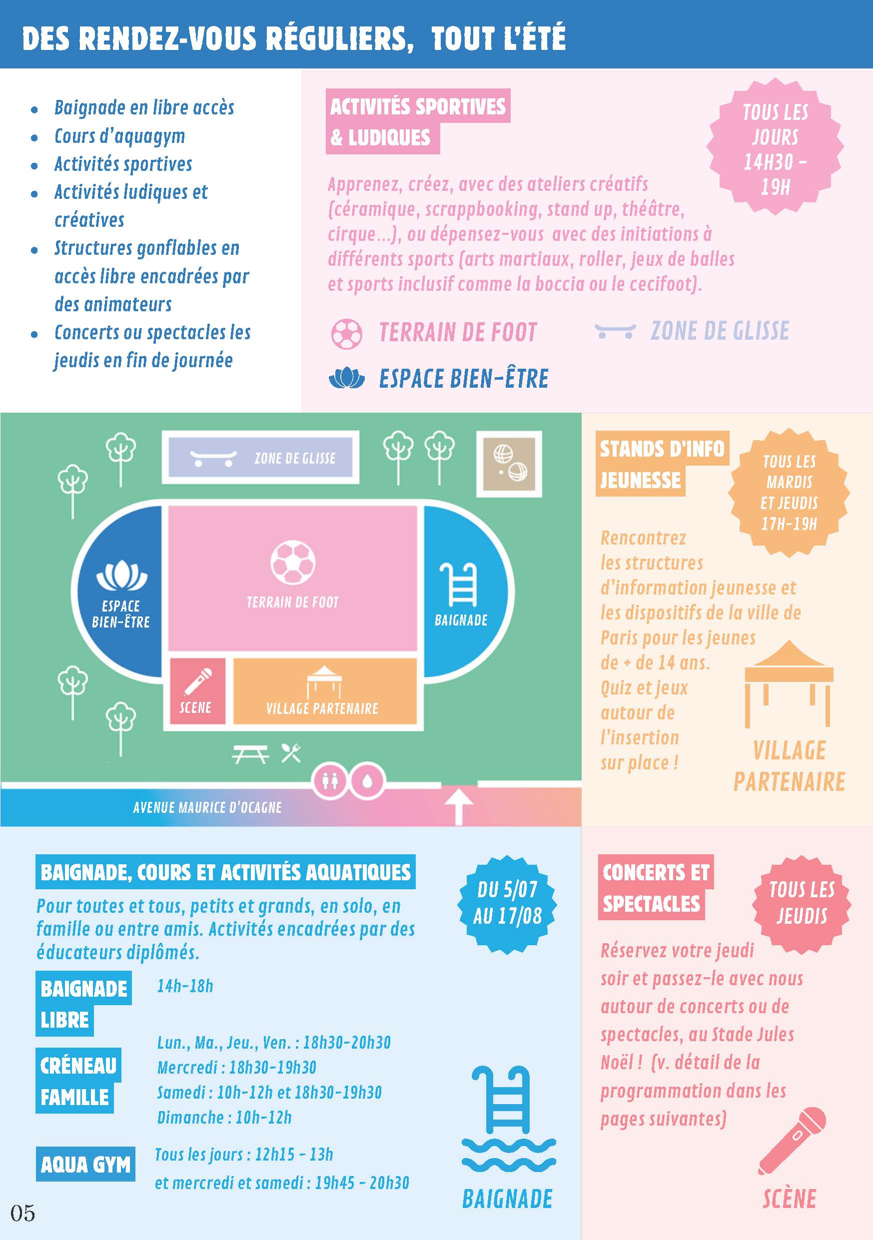 Du 5 juillet au 17 août, profitez des animations de la base de loisirs estivale Jules Noël dans le cadre de Paris en Seine. Au programme : activités sportives, ateliers ludiques et créatifs, spectacles, cinéma en plein air… Et baignade !